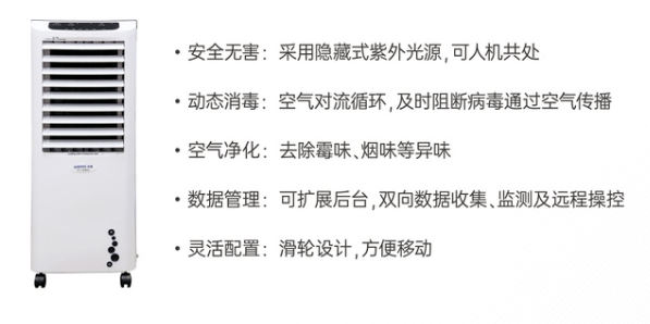 该系统通过电梯轿厢内空气交流对流,,,,,,应用对新冠病毒快速消杀的紫外线,,,,,,可实现无中止、高效、全方位消毒,,,,,,净化轿厢内空气,,,,,,有用阻断病毒通过气溶胶撒播,,,,,,为疫情防控助力。。。。。。在包管系统清静实时消毒的基础上,,,,,,电梯消毒系统三级平台投入使用,,,,,,包括都会级、机构专业级、企业级,,,,,,举行远程实时操控,,,,,,消毒数据实时上传,,,,,,实现动态管理。。。。。。