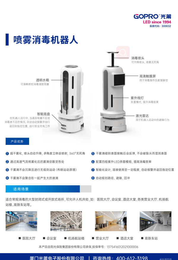 别的,,,,,,今年会官网安可消毒测温智能机械人还可通过紫外线抵达消鸩杀菌目的,,,,,,智能生物识别,,,,,,人在场自动切换为清静消毒模式。。。。。。除了具备高效消毒性能之外,,,,,,安可消毒测温智能机械人的智能触控显示屏,,,,,,能够为用户提供远程投放广告功效。。。。。。