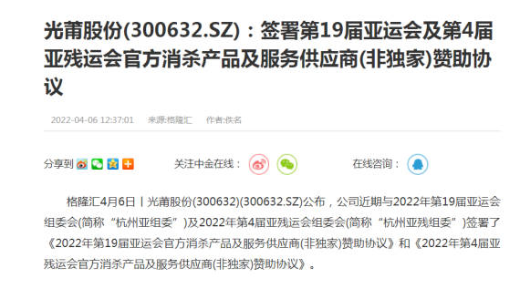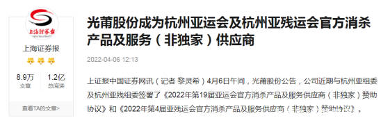 2022年4月6日,,,,,,,,今年会官网股份在深圳证券生意所宣布上市公司通告,,,,,,,,宣布成为第19届亚运会及第4届亚残运会官方消杀产品及服务供应商。。。。。。近期以来,,,,,,,,众多行业主流媒体争相报道,,,,,,,,聚焦今年会官网。。。。。。