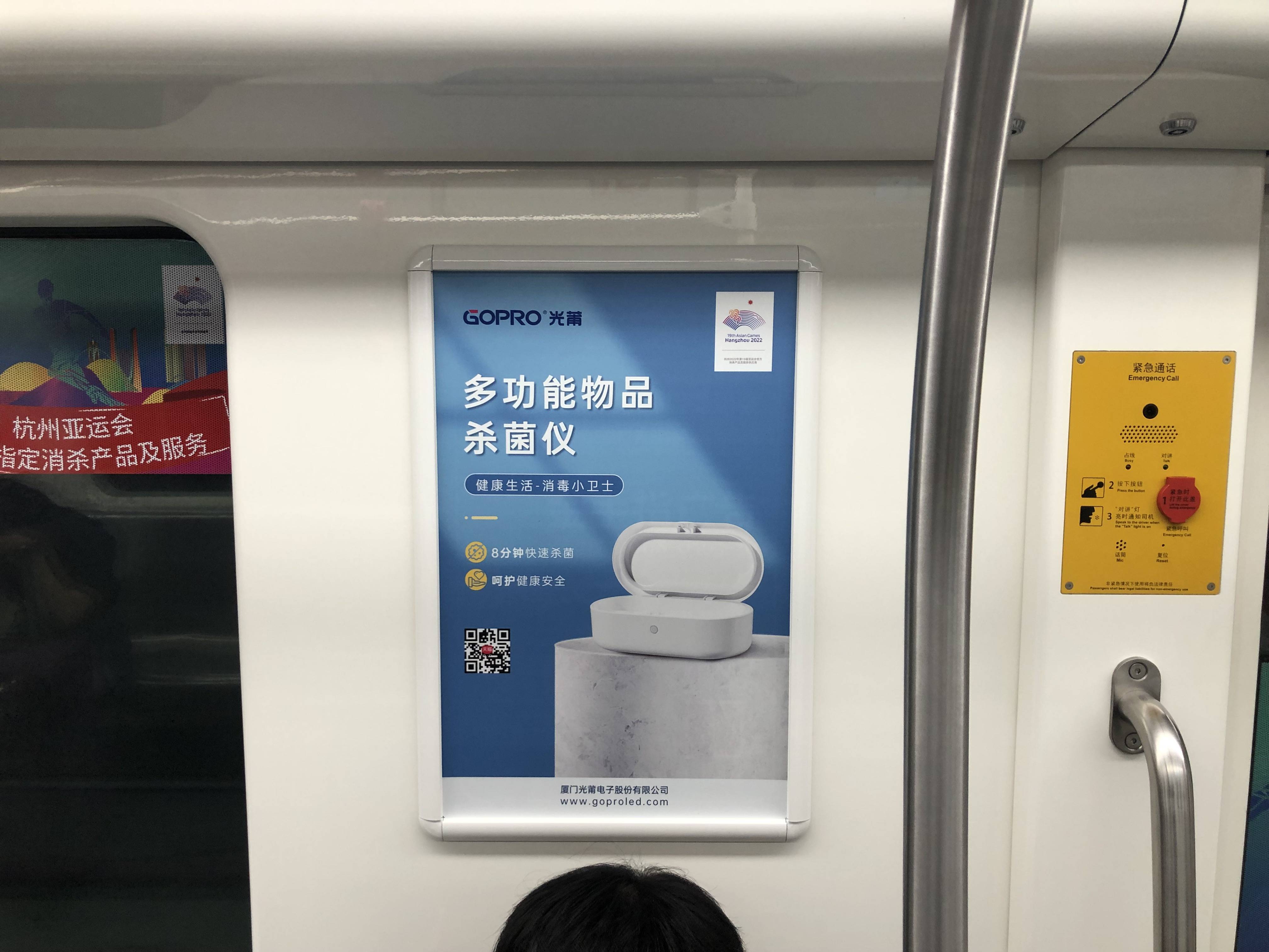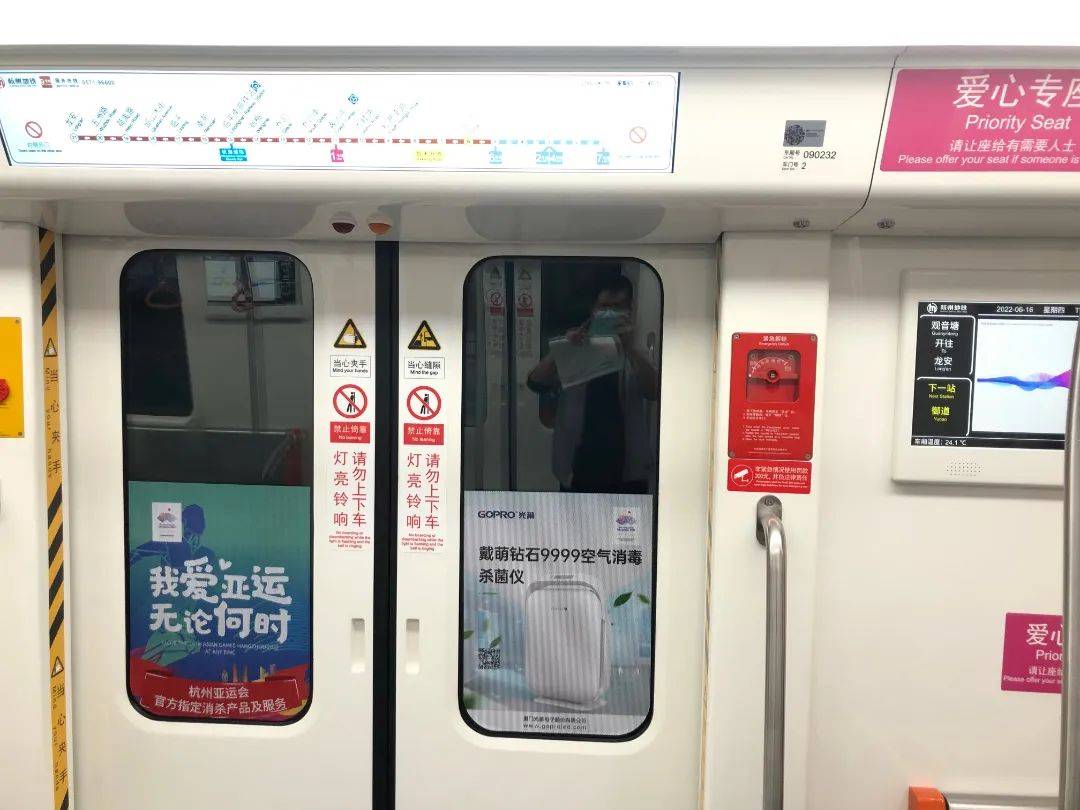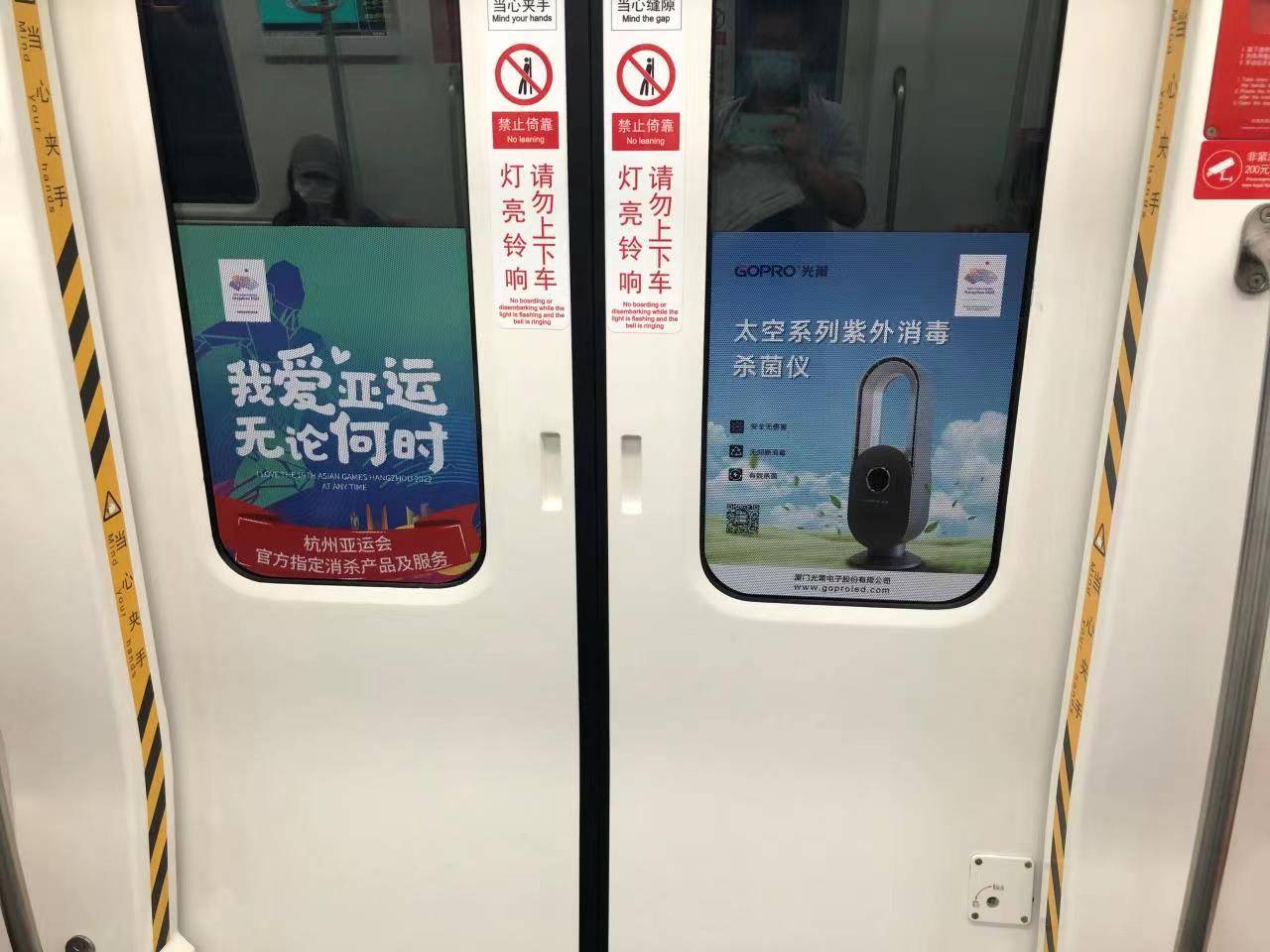 在杭州地铁9号线上,,,,,,今年会官网通过列车看板、车门玻璃、车窗玻璃等前言投放消杀产品画面,,,,,,构建都会智慧康健的生涯理念,,,,,,为亚运气氛的营造提供优异助力。。。。。。。